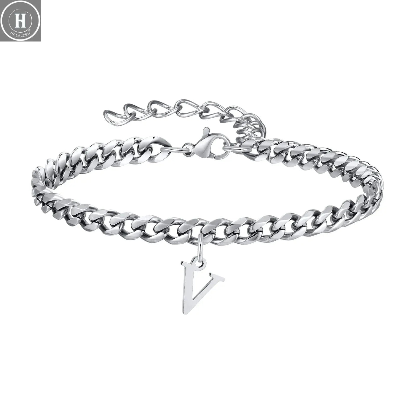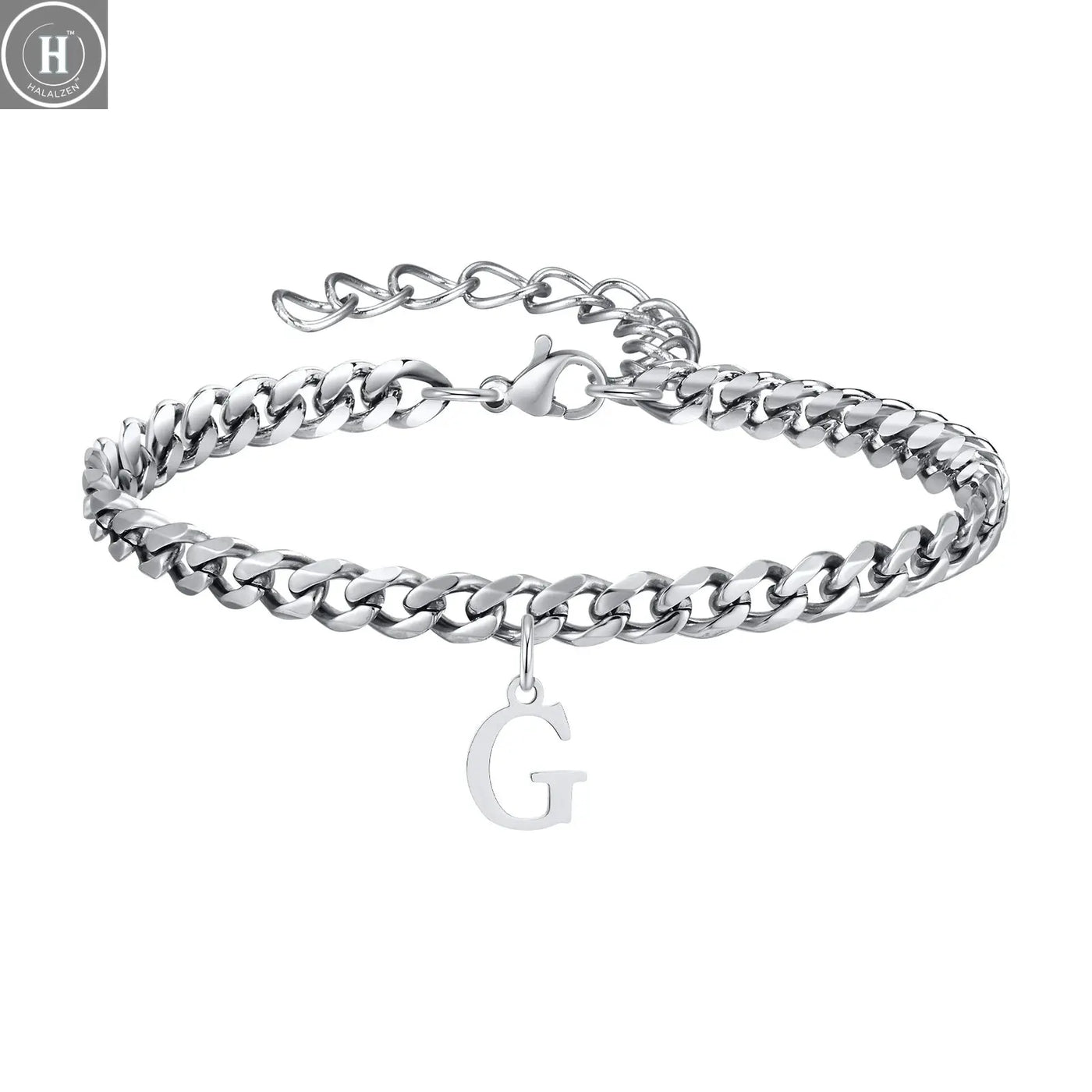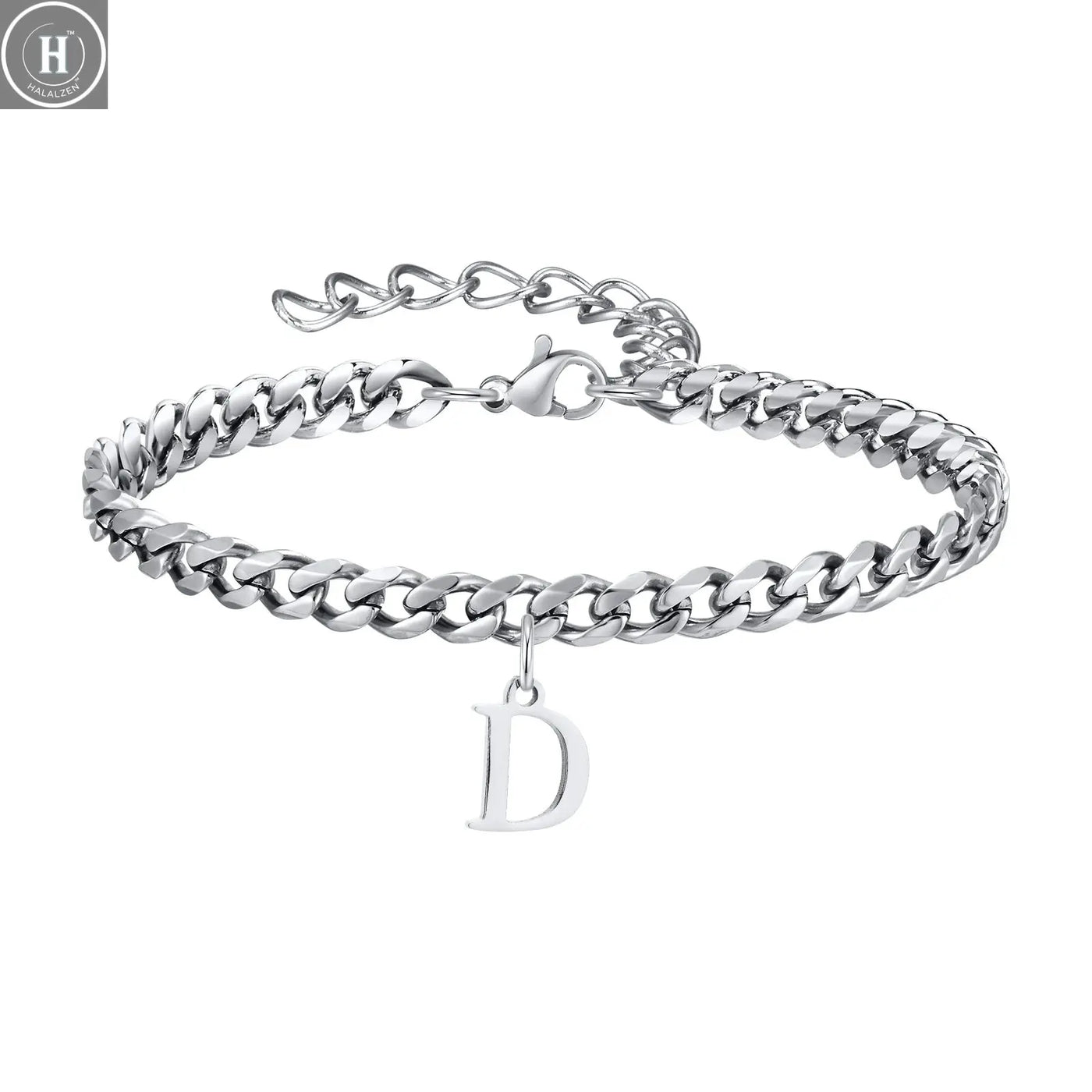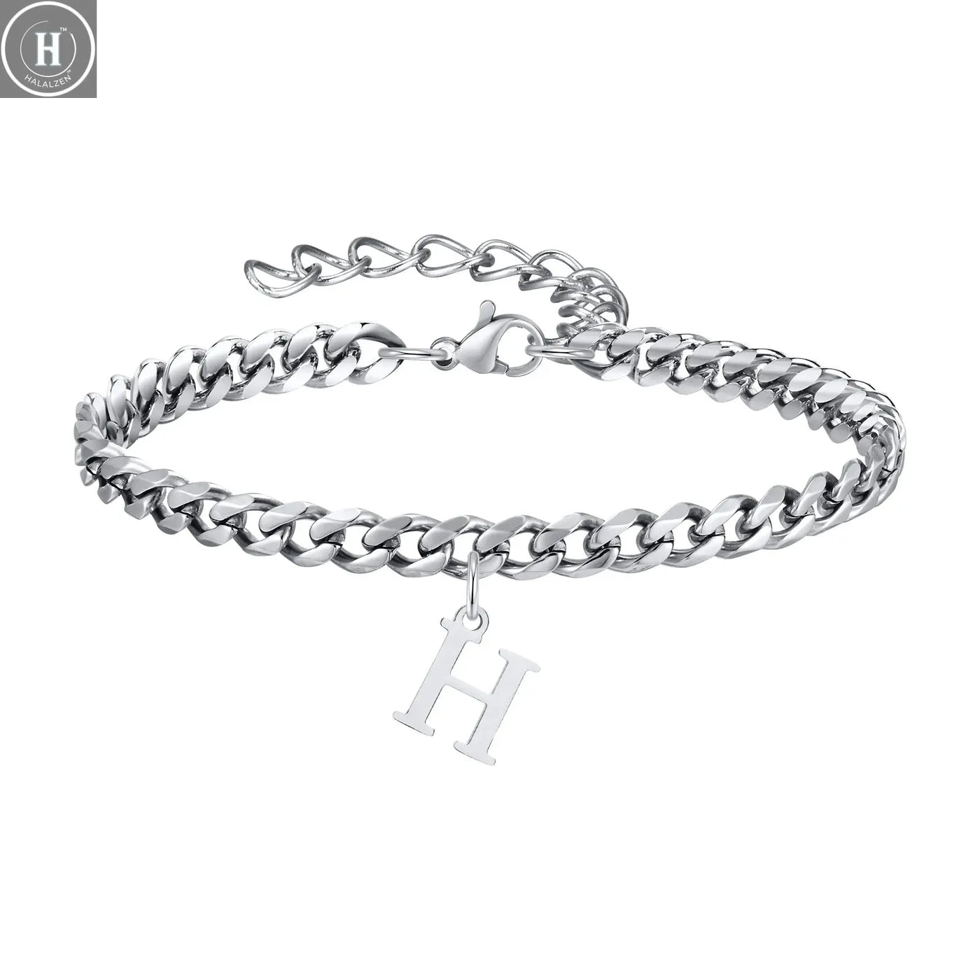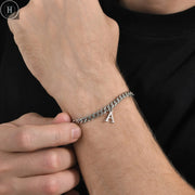 أساور رجالية بحروف أولية وروابط كوبية، من الفولاذ المقاوم للصدأ بحروف الأبجدية من الألف إلى الياء 26 حرفًا، سلسلة تعويذة، سوار معصم قابل للتعديل، هدية مجوهرات عادية