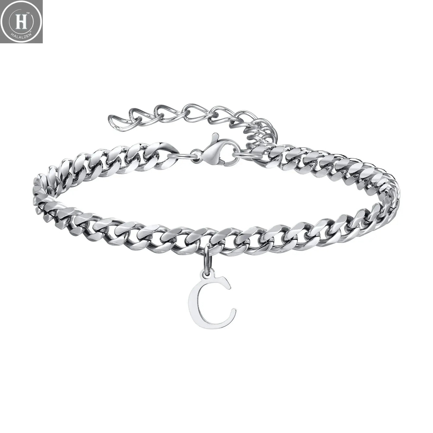 أساور رجالية بحروف أولية وروابط كوبية، من الفولاذ المقاوم للصدأ بحروف الأبجدية من الألف إلى الياء 26 حرفًا، سلسلة تعويذة، سوار معصم قابل للتعديل، هدية مجوهرات عادية - سي