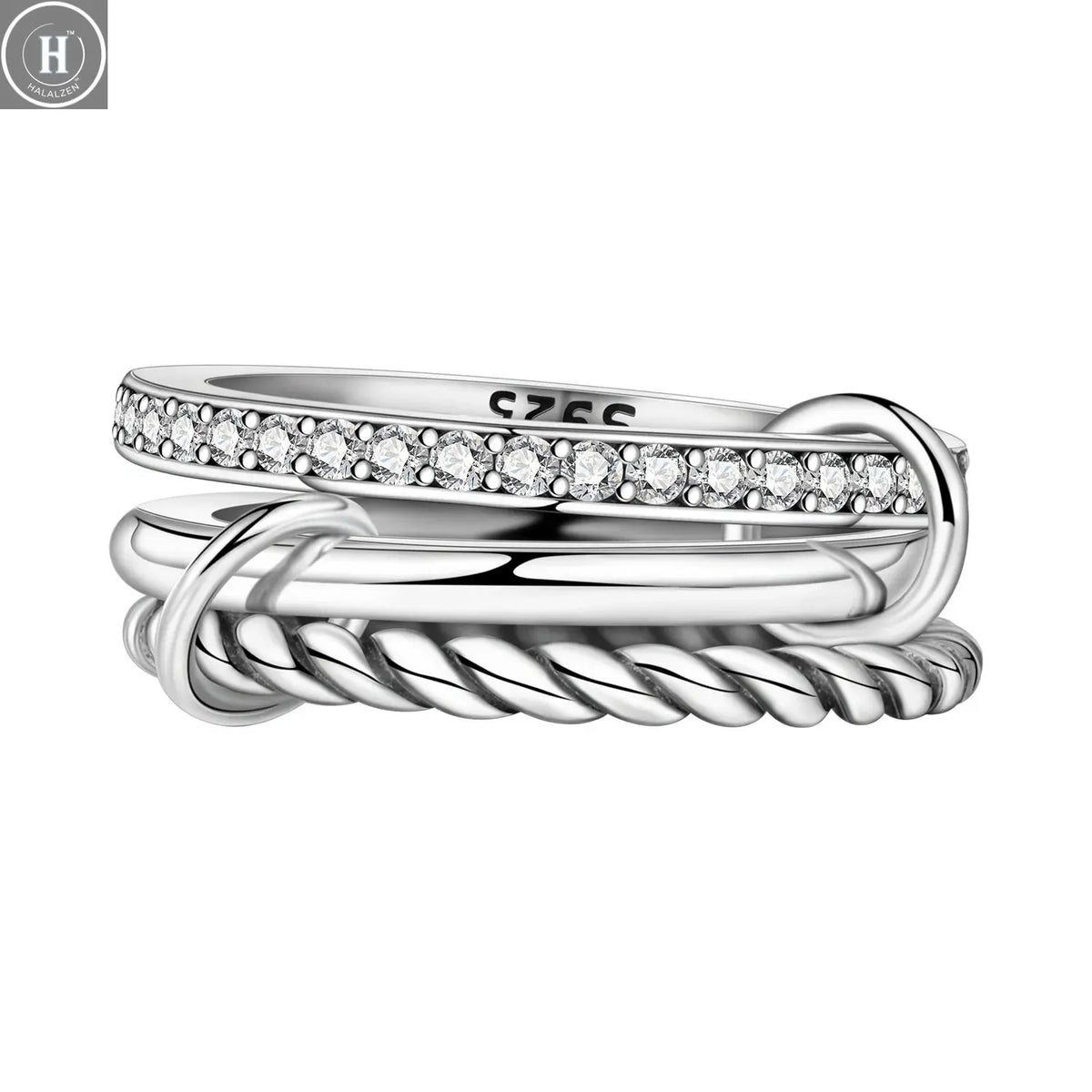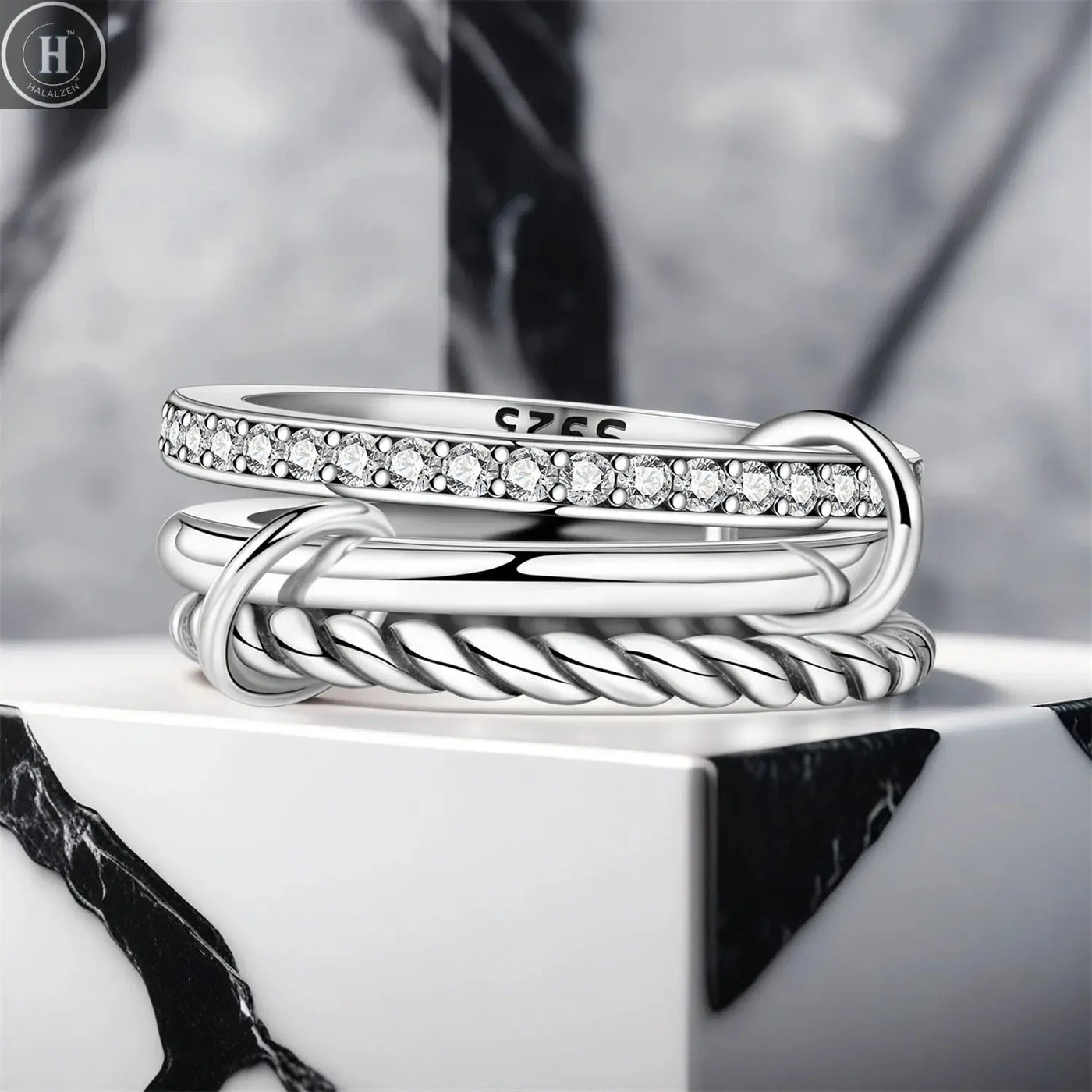 CYCUFF 925 Sterling Silver Designed Simple Fashion 3-Ring Rings Closed Ring for Women Birthday Party Jewelry Gift Ring Comfort