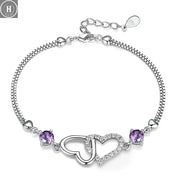 سوار فضة استرليني عيار 925 مزين بحجر الجمشت الطبيعي والزركون على شكل قلب للسيدات، سوار تعويذة، هدية مجوهرات، مجوهرات زفاف - أرجواني