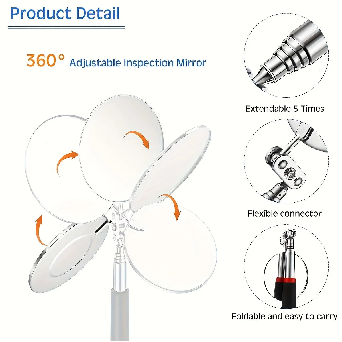 4pcs Telescopic Magnetic Pick Up Tool Set Inspection Mirror Flexible Spring Claw Grabber Magnet Stick Auto Mechanic Repair Tools - 4pcs