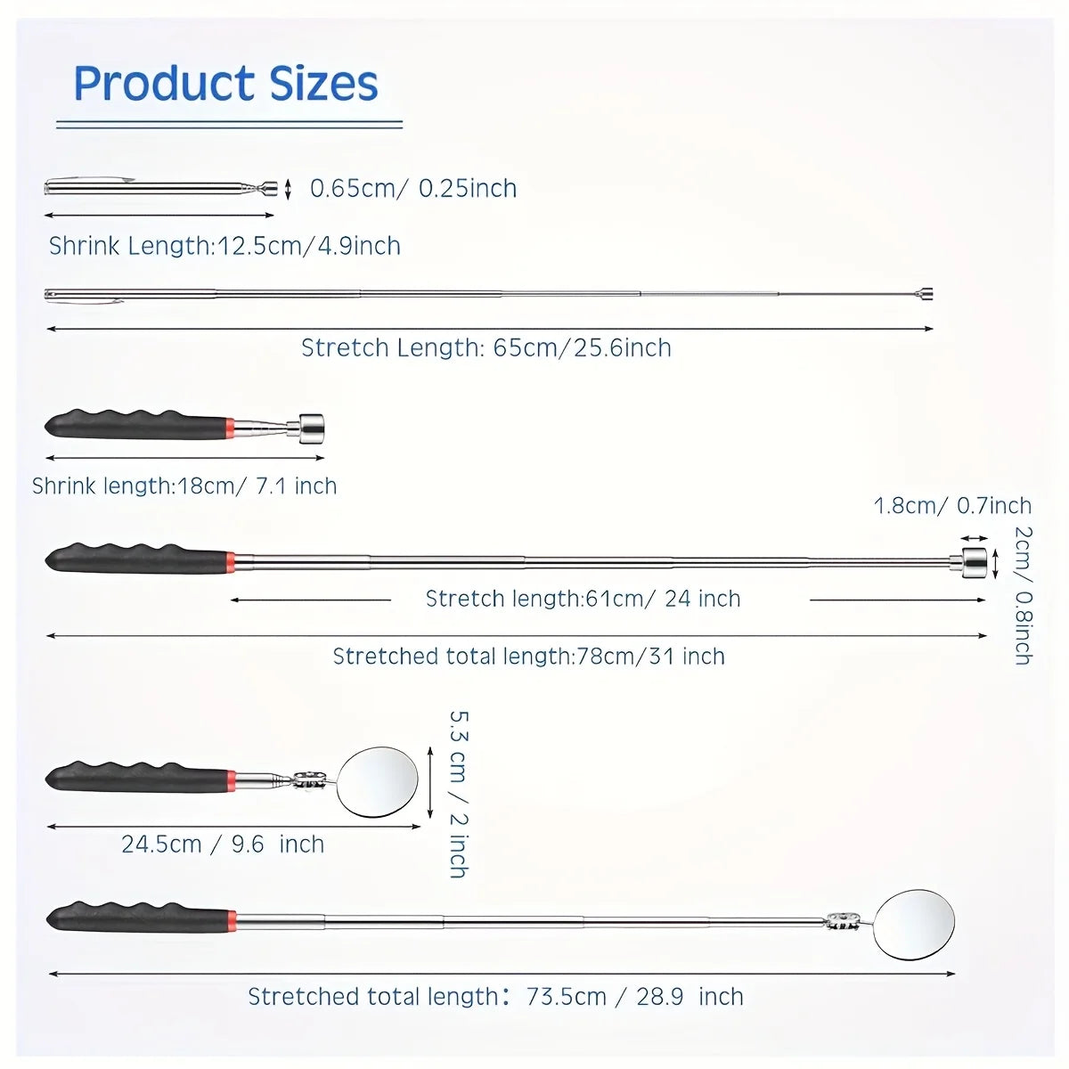 Inform when this item available 4pcs Telescopic Magnetic Pick Up Tool Set Inspection Mirror Flexible Spring Claw Grabber Magnet Stick Auto Mechanic Repair Tools