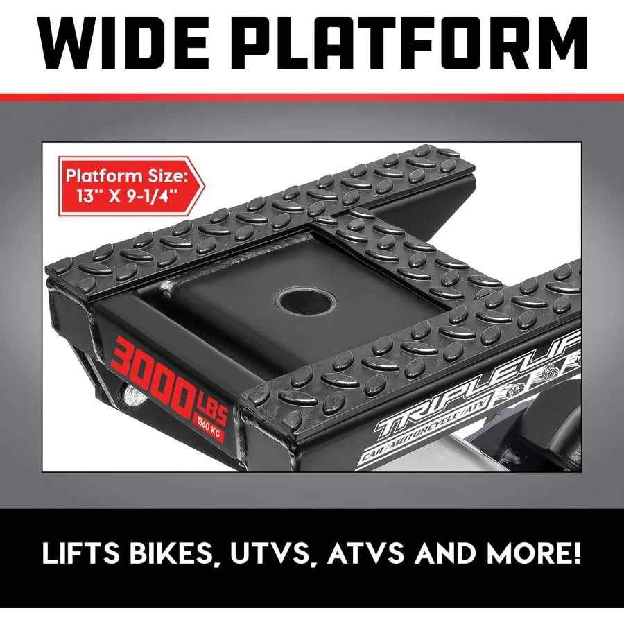 Big Wheel Triple Lift Garage Jack 3000 Pound Off Road Lift for Trucks Cars and Motorcycles with 1.5 Ton Capacity Ideal for Heav - United States