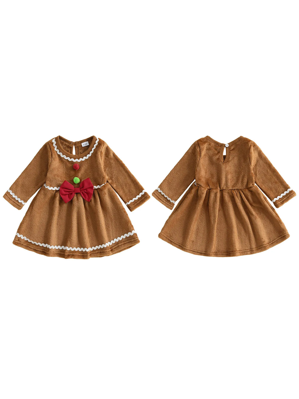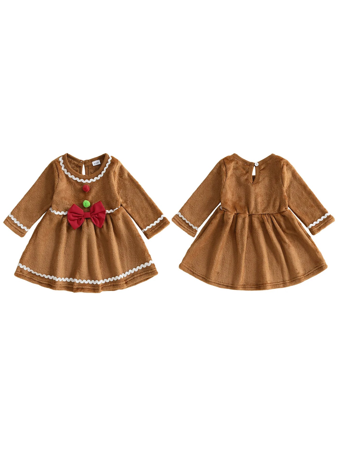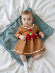 Cute Baby Boy Santa Claus Print Romper Round Neck Long Sleeves Bow Decor Christmas Jumpsuit Toddler Xmas Outfit - Coffee / 18-24 Months / United States