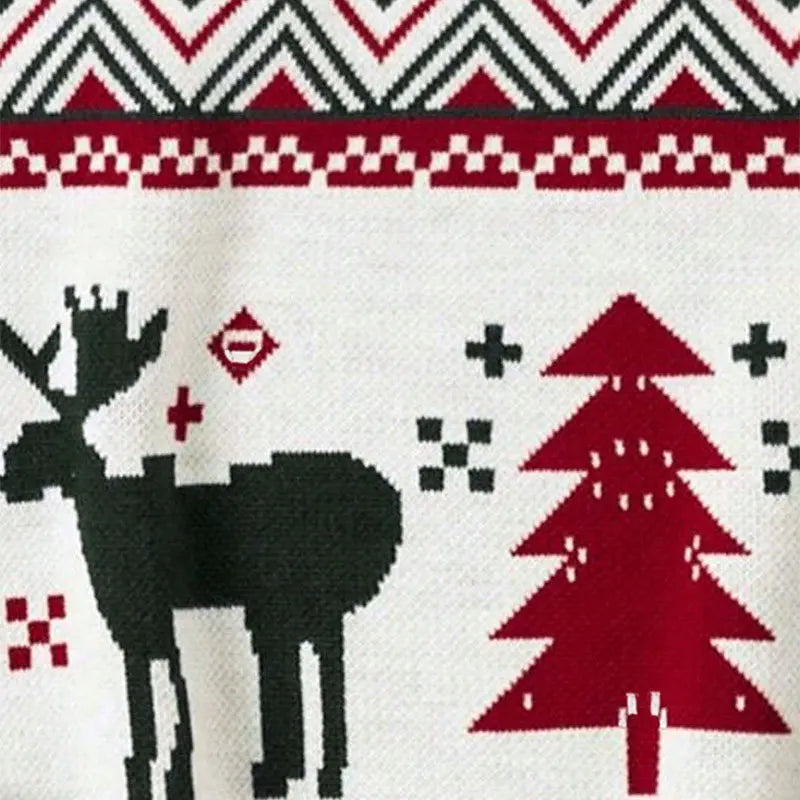 Men's American-style Christmas knitted pullover sweater, 2025 autumn/winter style round-neck long-sleeve knitted sweater. - White / S / Pack of 1
