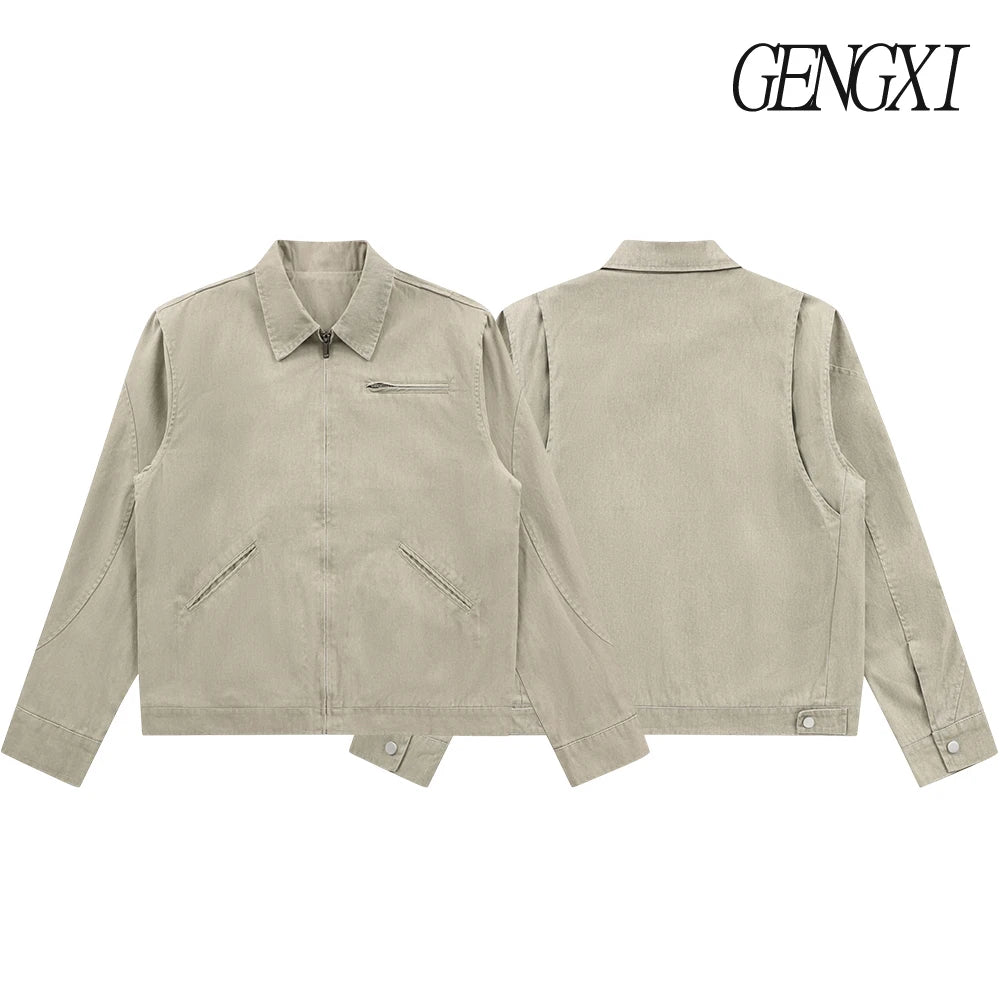 Fashionable retro washed distressed multi-pocket denim jacket New men's Detroit workwear jacket Clean Fit casual menswear