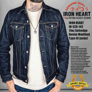 IRON HEART "TypeIII" 14oz Indigo one-wash heavy-duty denim jacket - Blue 14oz (Type III) / XL
