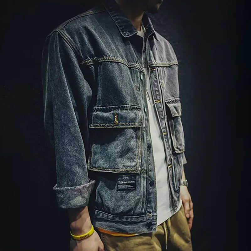 Inform when this item available Korean Version Spring And Autumn New Men'S Retro Workwear Casual Denim Jacket Slim Fit Lapel Jacket Large Pocket Denim Jacket