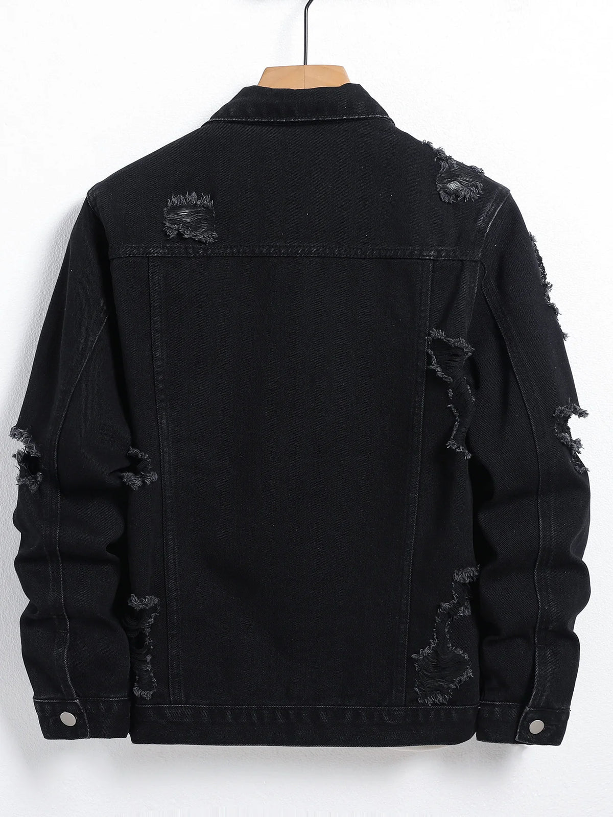 Inform when this item available Men's Denim Jacket - Black Regular Jacket, Street Fashion with Rips, Suitable for Daily Casual Outings