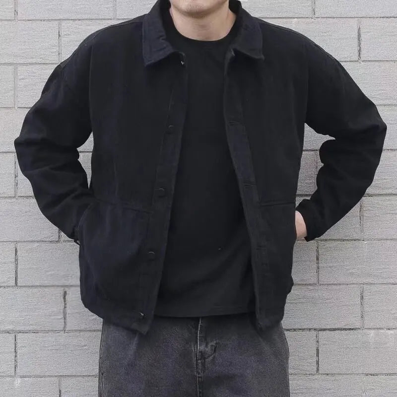 Men's Winter Denim Jaet Lamb Velvet Warm Fur Collar Cotton Workwear Jaet Slim Fit Korean Sle Youthful Long Sve Zipper - 2–xl / Black
