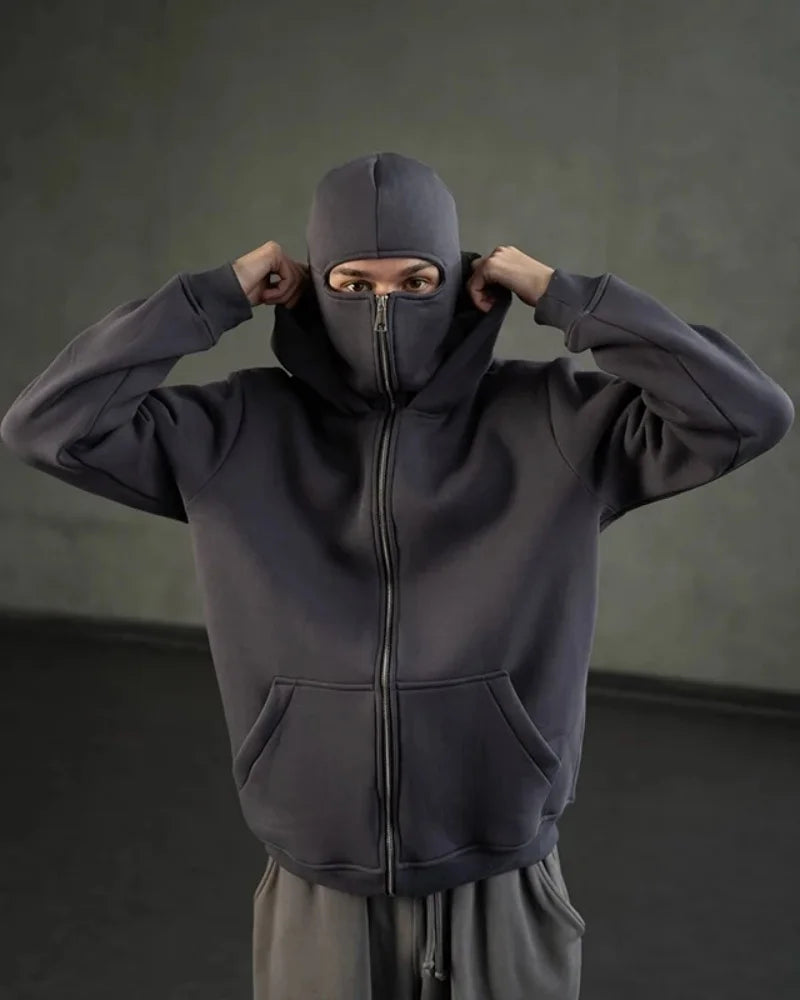 2025 Autumn/Winter New Men's and Women's Double Hats with Velvet Hoodie Coat Zipper Windproof and Warm Couple Hip Hop Sports Top
