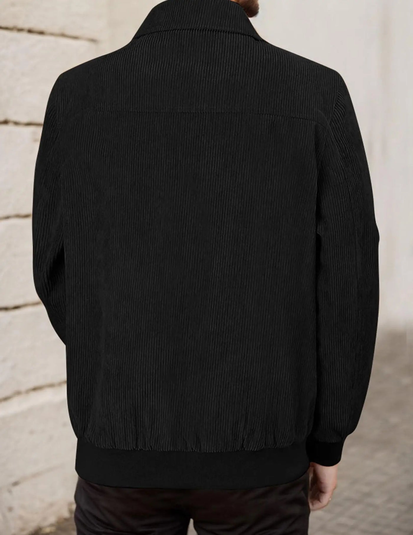 Mens Corduroy Trucker Jacket Long Sleeve Zip Up Lapel Collar Casual Fall Winter Shacket Coat With Pocket - black / XXL