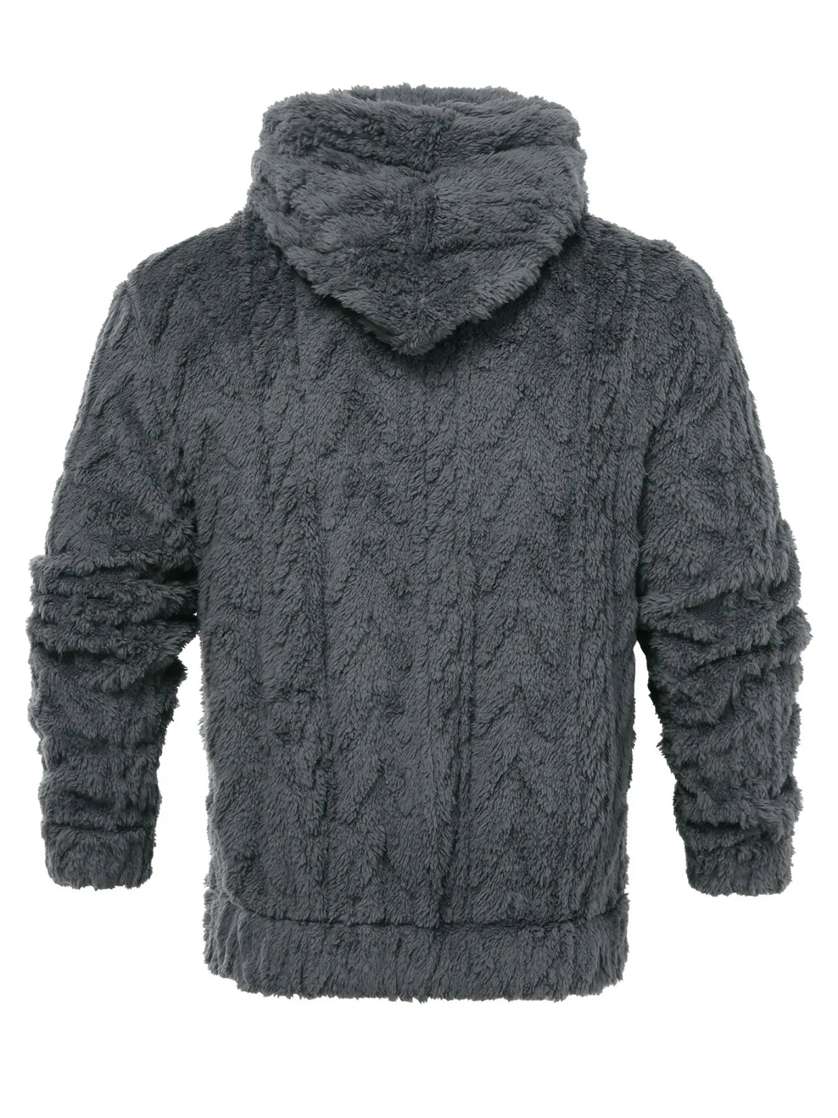 Inform when this item available Men's letter drawstring hooded teddy bear jacket, jacquard velvet fabric is soft and comfortable, double pocket design