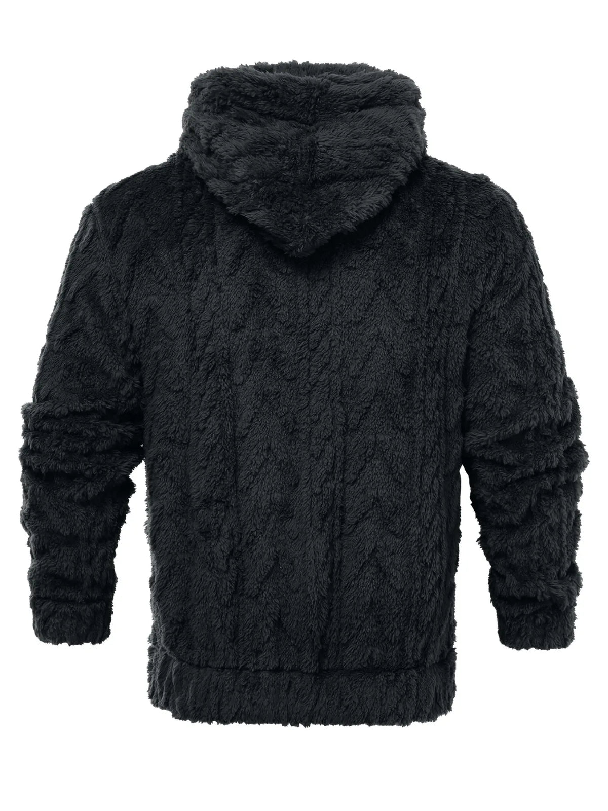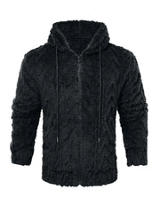 Men's letter drawstring hooded teddy bear jacket, jacquard velvet fabric is soft and comfortable, double pocket design - black / M / United States