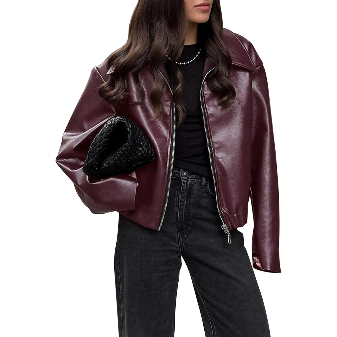 Inform when this item available Women s Faux Leather Moto Jacket with Removable Hood Vintage Long Sleeve Lapel Collar Zip Up Biker Coat Outwear