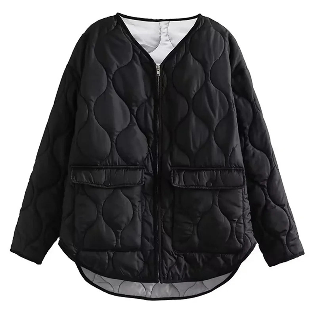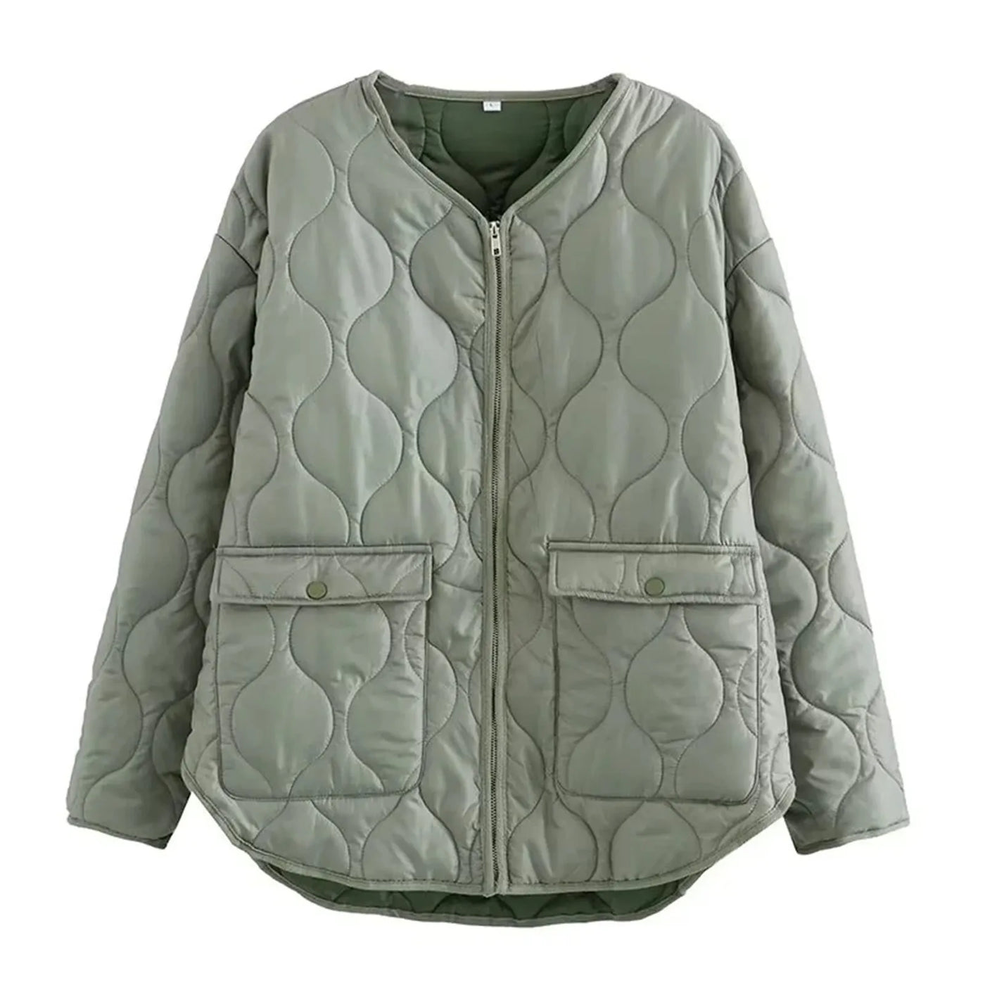 Inform when this item available Women's Solid Winter Jacket V Neck Zipper Long Sleeve Cotton Down Coat For Women Versatile Wolfeel Quilted Jacket For Women