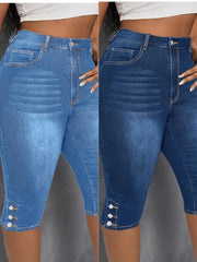 Large elastic slit button detail comfortable mid-length jeans - 210025-DB / 3XL / United States