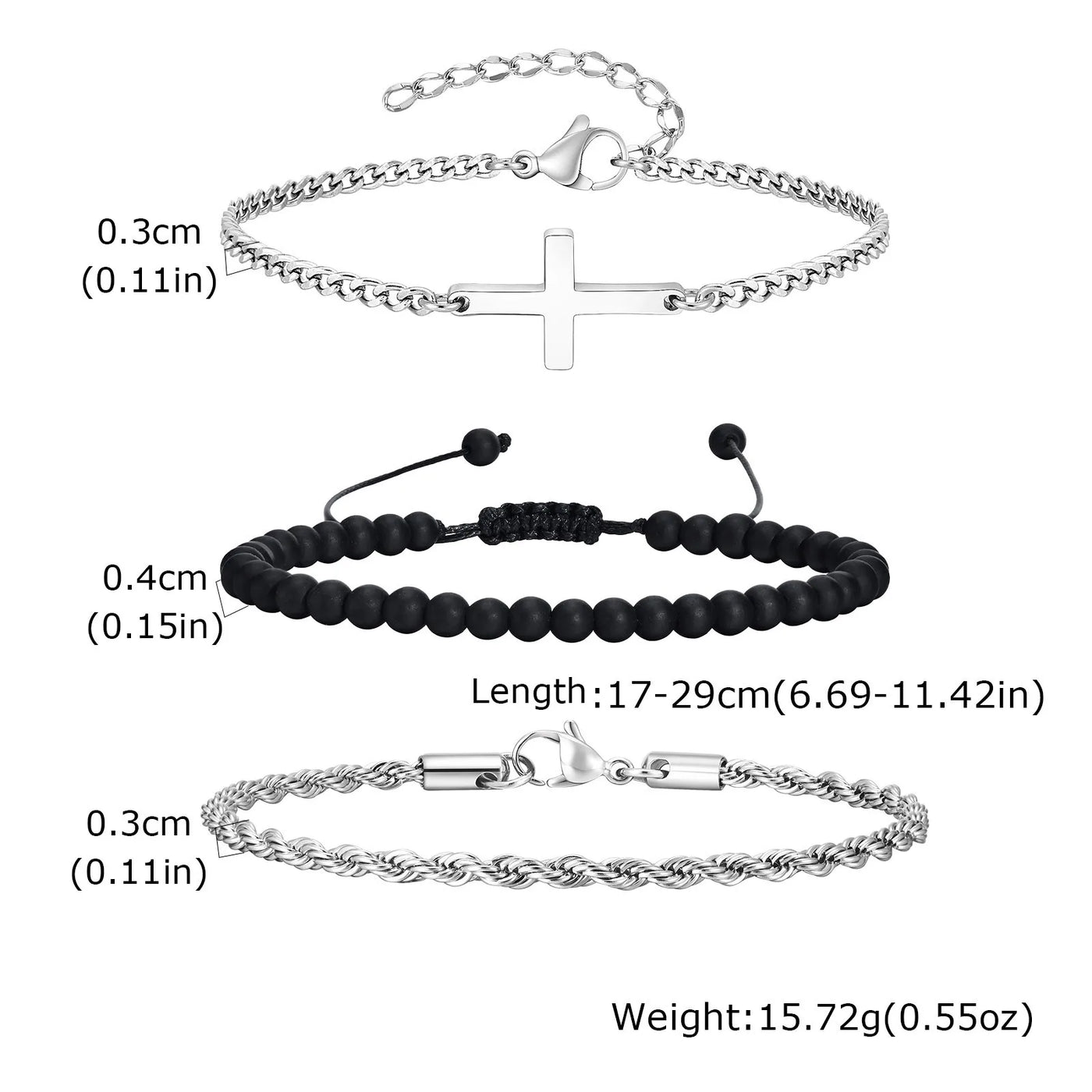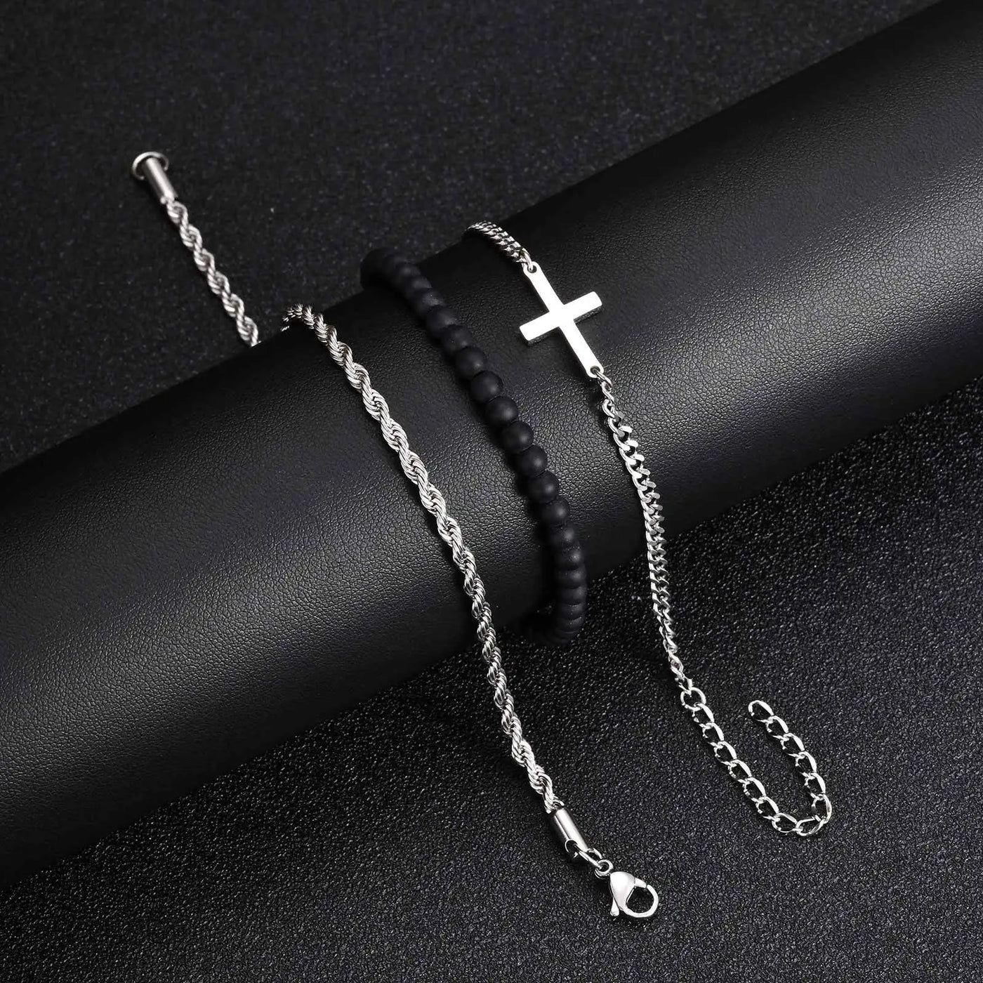 3pcs Stylsh Cross Men's Bracelet,Punk Stainless Steel Stacked Chain Link Wristband,Birthday Anniversary Gift for Him - set / 21cm