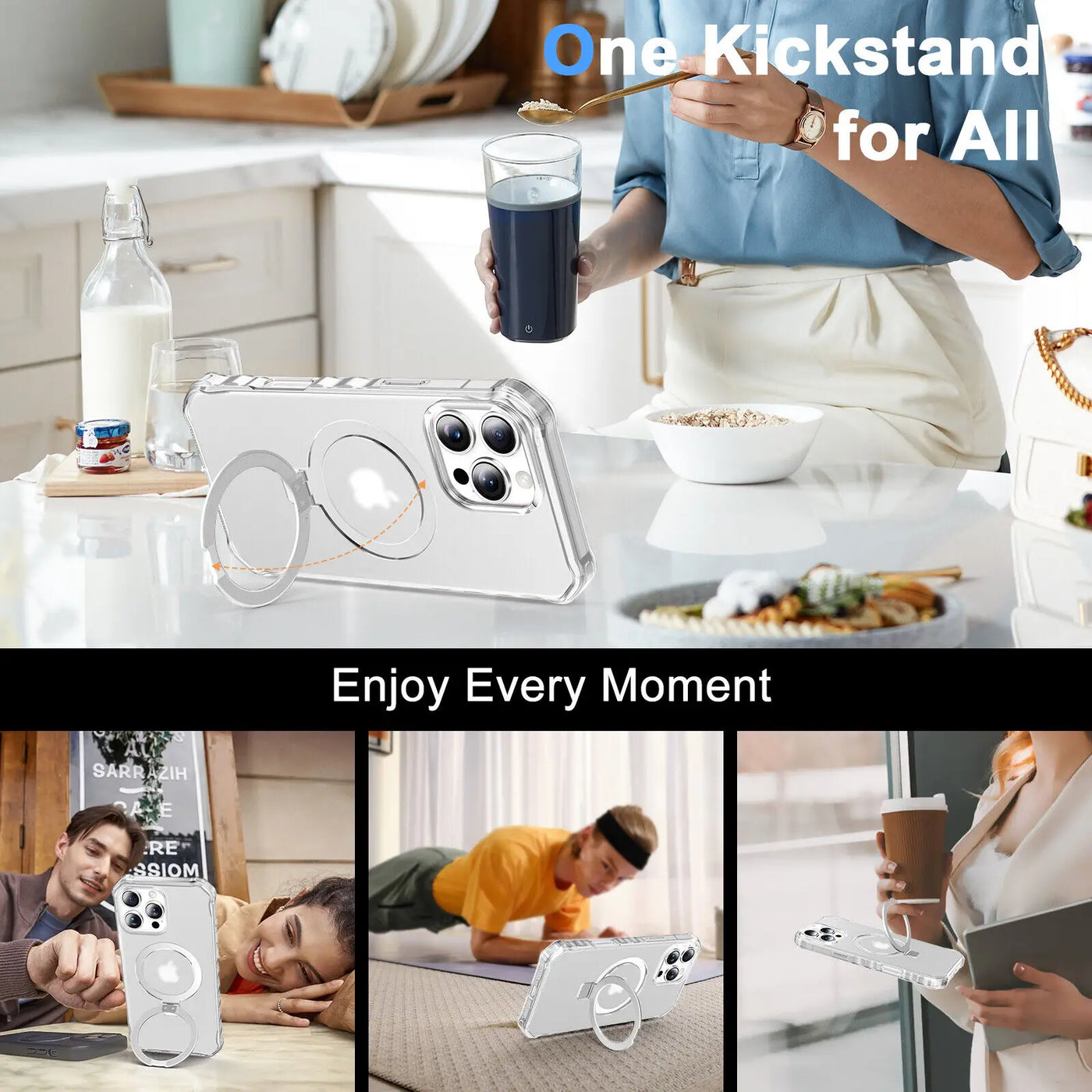 Magnetic Case for iPhone 16 Pro Max Plus with O-Ring Stand Mag-Safe Slim Cover - United States / Clear / For iPhone 16 ProMax