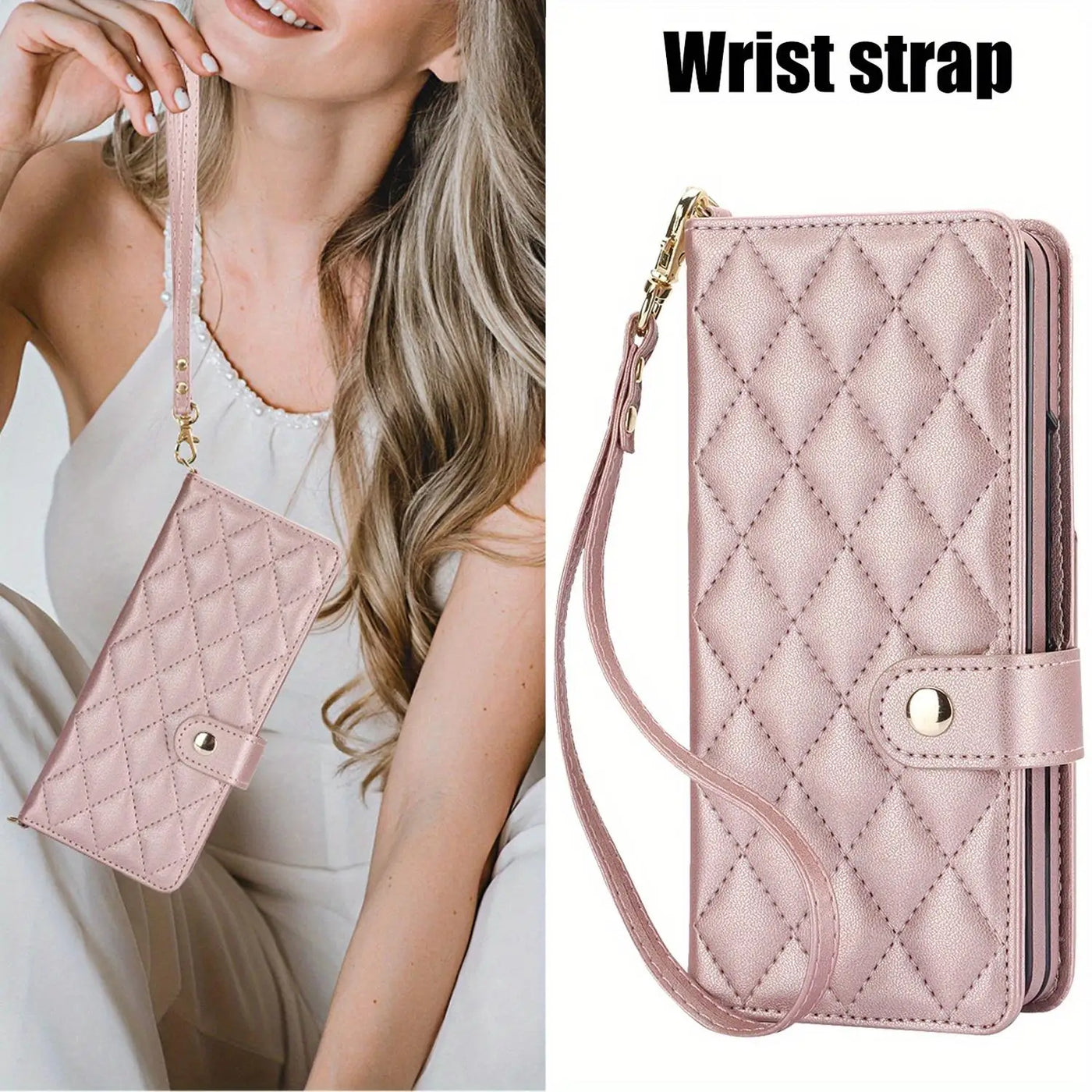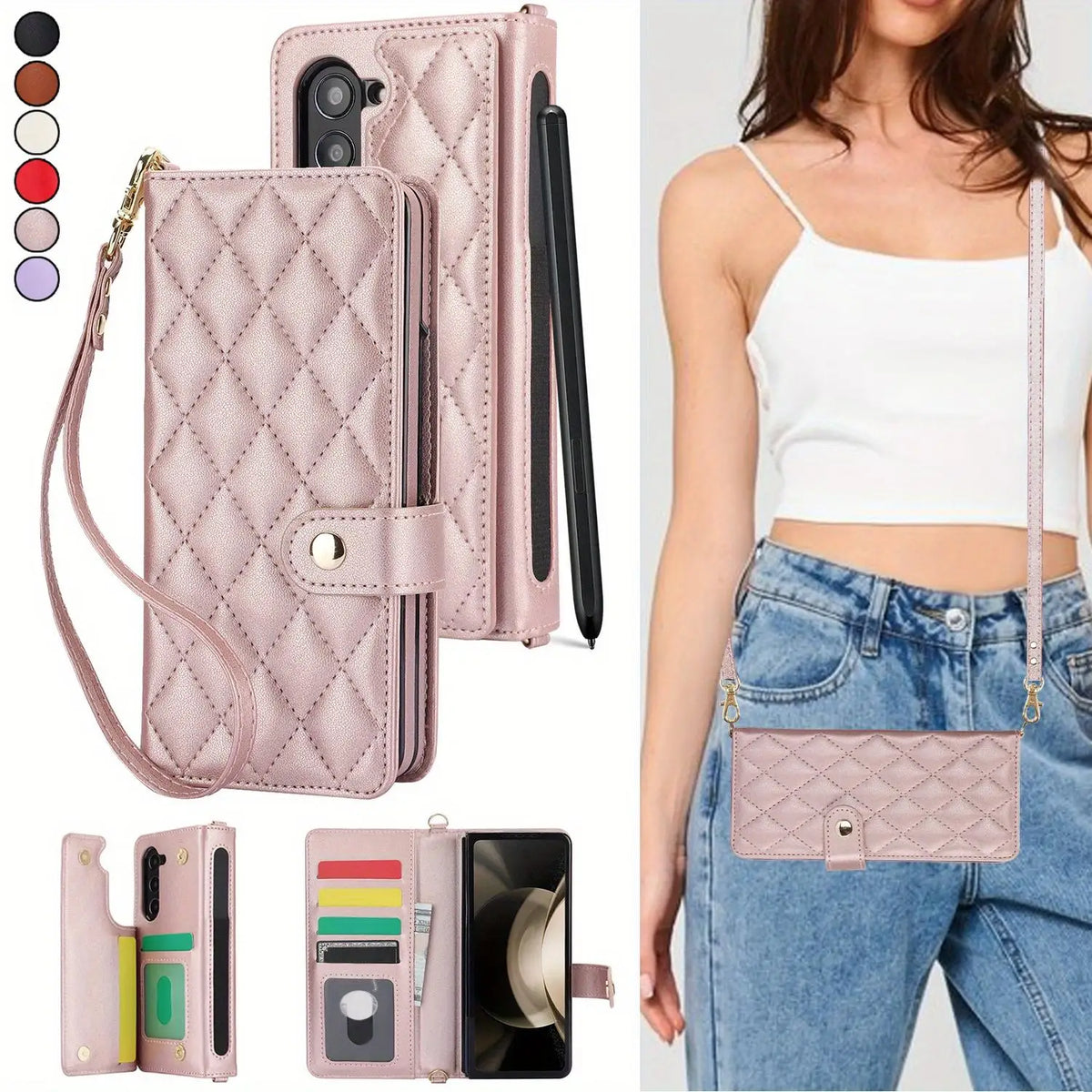 PU Leather Flip Wallet Case For Samsung Galaxy Z Fold 6 5 4 3 5G With Holder Crossbody Wrist Strap Card Slot Stand Phone Cover