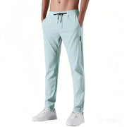 Men Fast Dry Stretch Pants Ice Silk Trousers Solid Color Mid-Waist Loose Breathable Straight-Leg Casual Pants Thin Sports Pants
