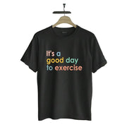 It's a good day to exercise T-Shirt Motivational Gym Workout Print Short Sleeve Active Lifestyle Casual Top Unisex - black / S
