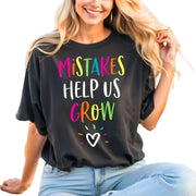 Mistakes Help Us Grow T-Shirt Motivational Graphic Tee Unisex Positive Vibes Apparel Inspirational Gift for Students Teachers - Black / M