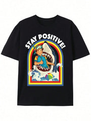 Inform when this item available Stay Positive Shark Lovers Graphic T-Shirt Black Short Sleeve Cotton Motivational Ocean Wildlife Design for Men