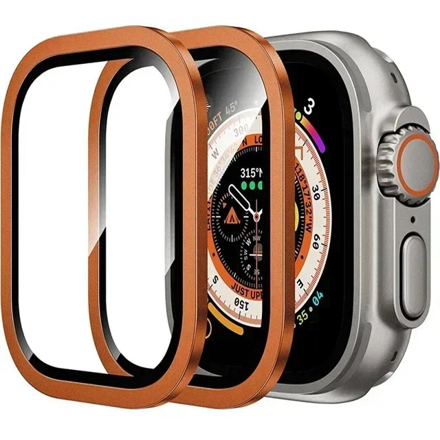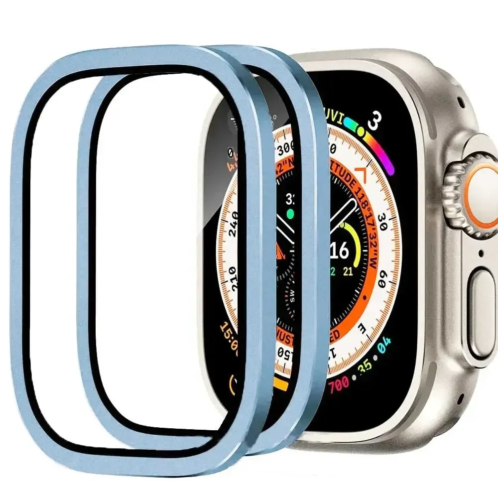 2PCS Aluminium Alloy Case+Tempered Glass for Apple Watch Ultra 2 49mm Anti-Scratch Screen Protector iWatch Ultra 49mm Cover Film