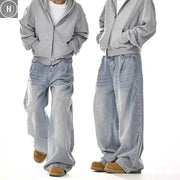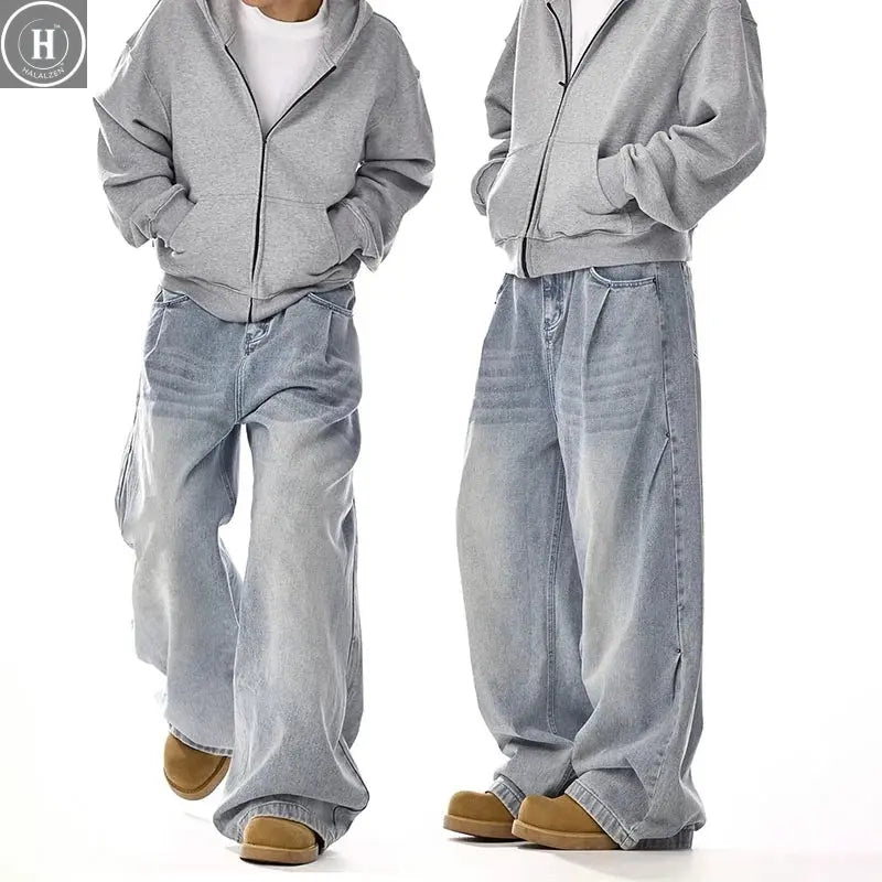 Nye koreanske retro herrejeans højtaljede lige bukser løstsiddende afslappede jeans mode brede bukser - Blå / XL
