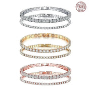 Classic 925 sterling silver sparkling zircon luxury bracelet women's dates birthdays fashion jewelry Valentine's Day gifts - 2.5mm Gold Color Bra / 19cm