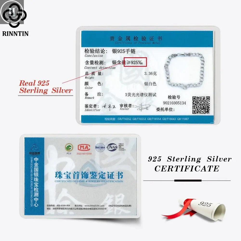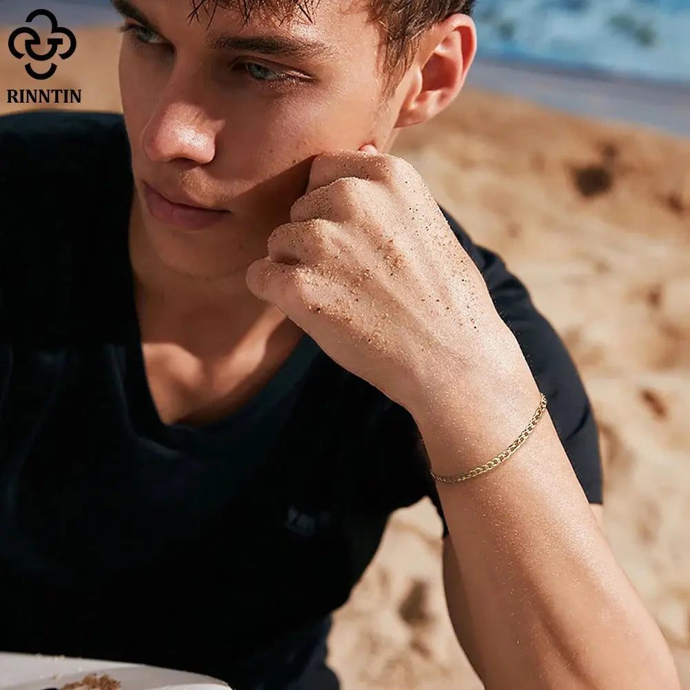 Inform when this item available Rinntin Armband aus 18-karätigem Gold über 925er Sterlingsilber, 3 mm, italienische kubanische Kette, für Damen und Herren, trendiges Silberarmband, Schmuck SB123