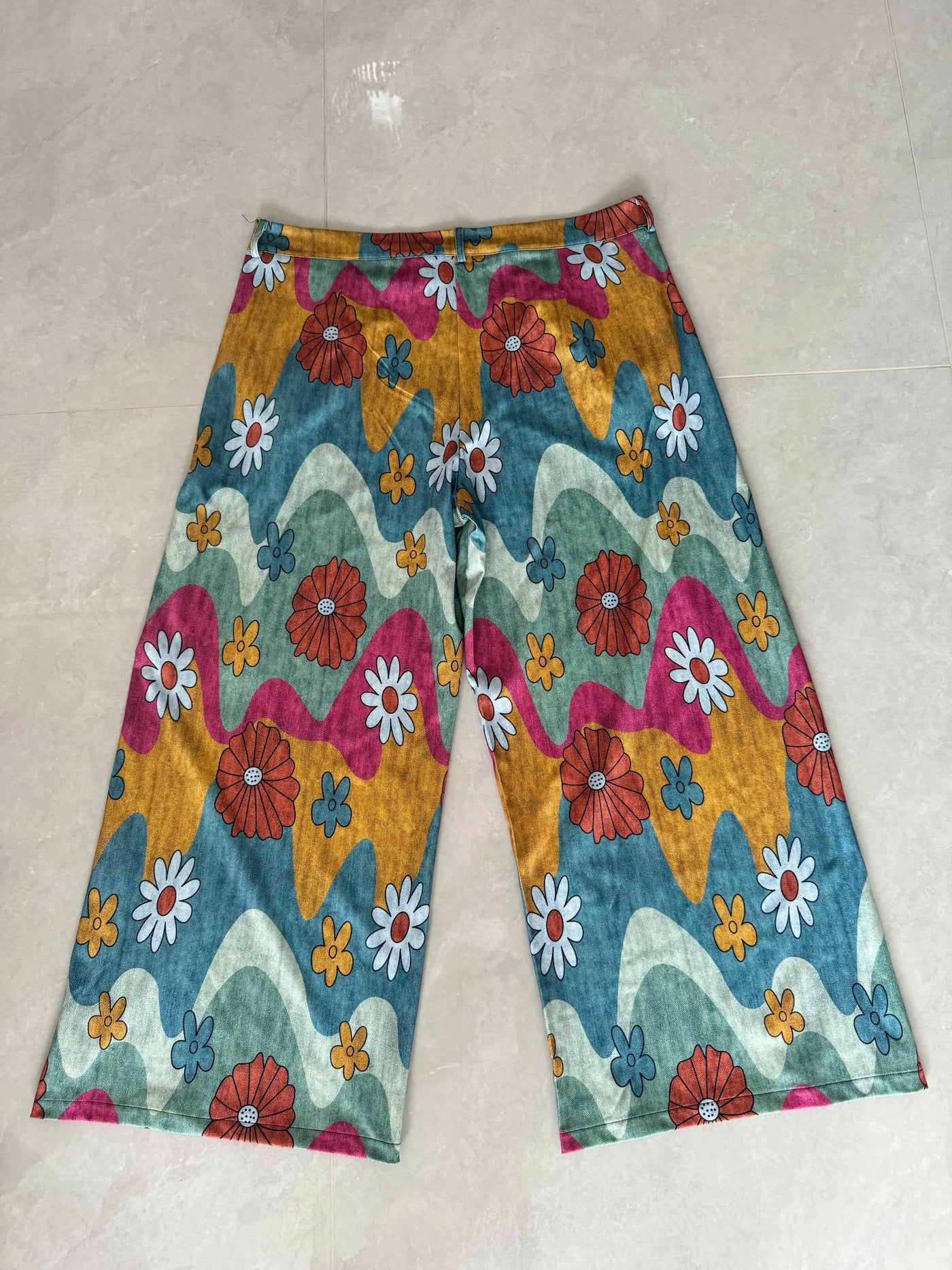 Informar cuando este artículo esté disponible Pantalones acampanados delgados para mujer talla grande con imitación de mezclilla, cinturilla elástica y bolsillo con solapa diagonal, estampados con girasoles y margaritas, cómodos y a la moda para todas las estaciones