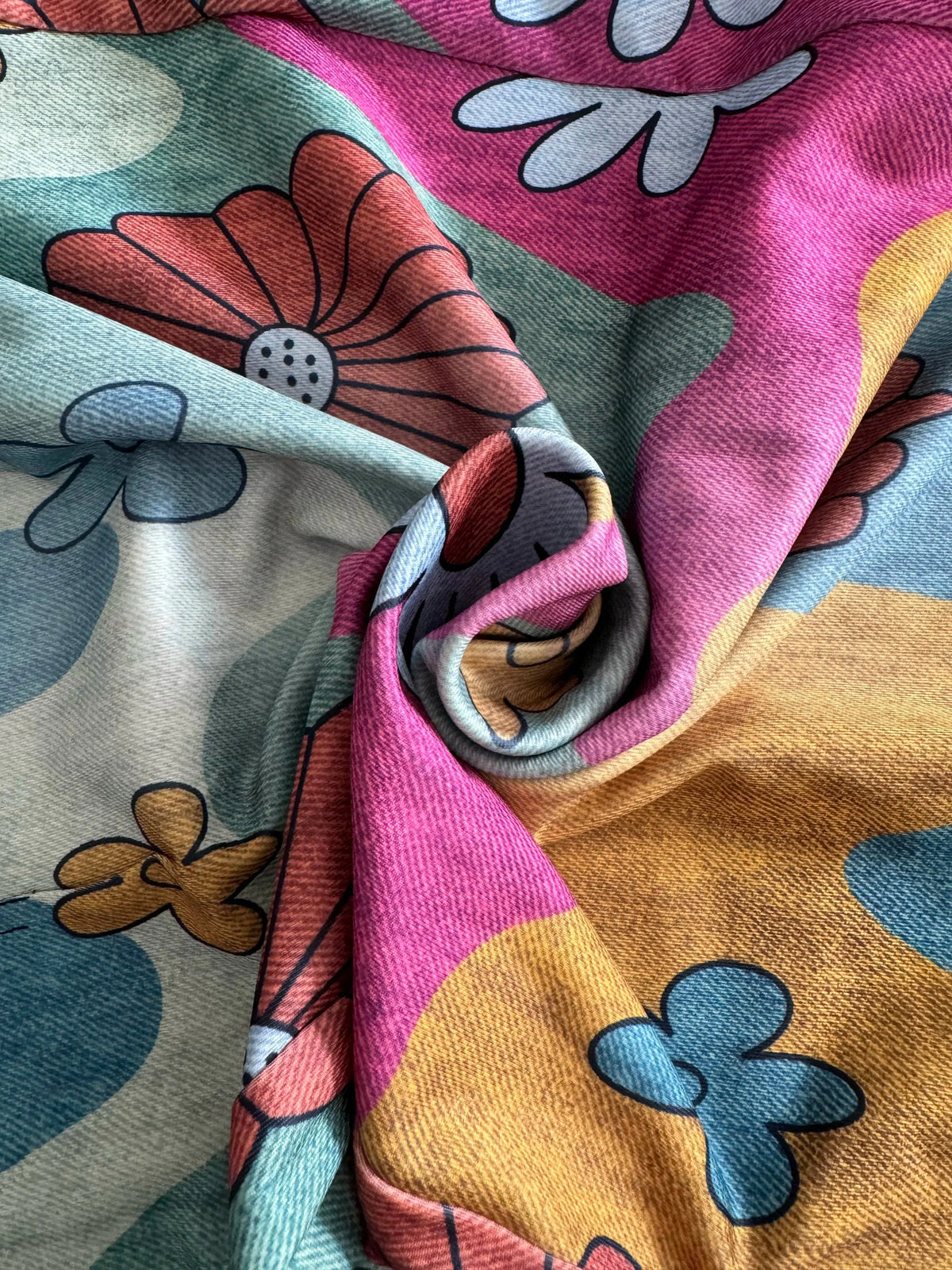 Pantalones acampanados delgados para mujer talla grande con imitación de mezclilla, cinturilla elástica y bolsillo con solapa diagonal, estampados con girasoles y margaritas, cómodos y a la moda para todas las estaciones