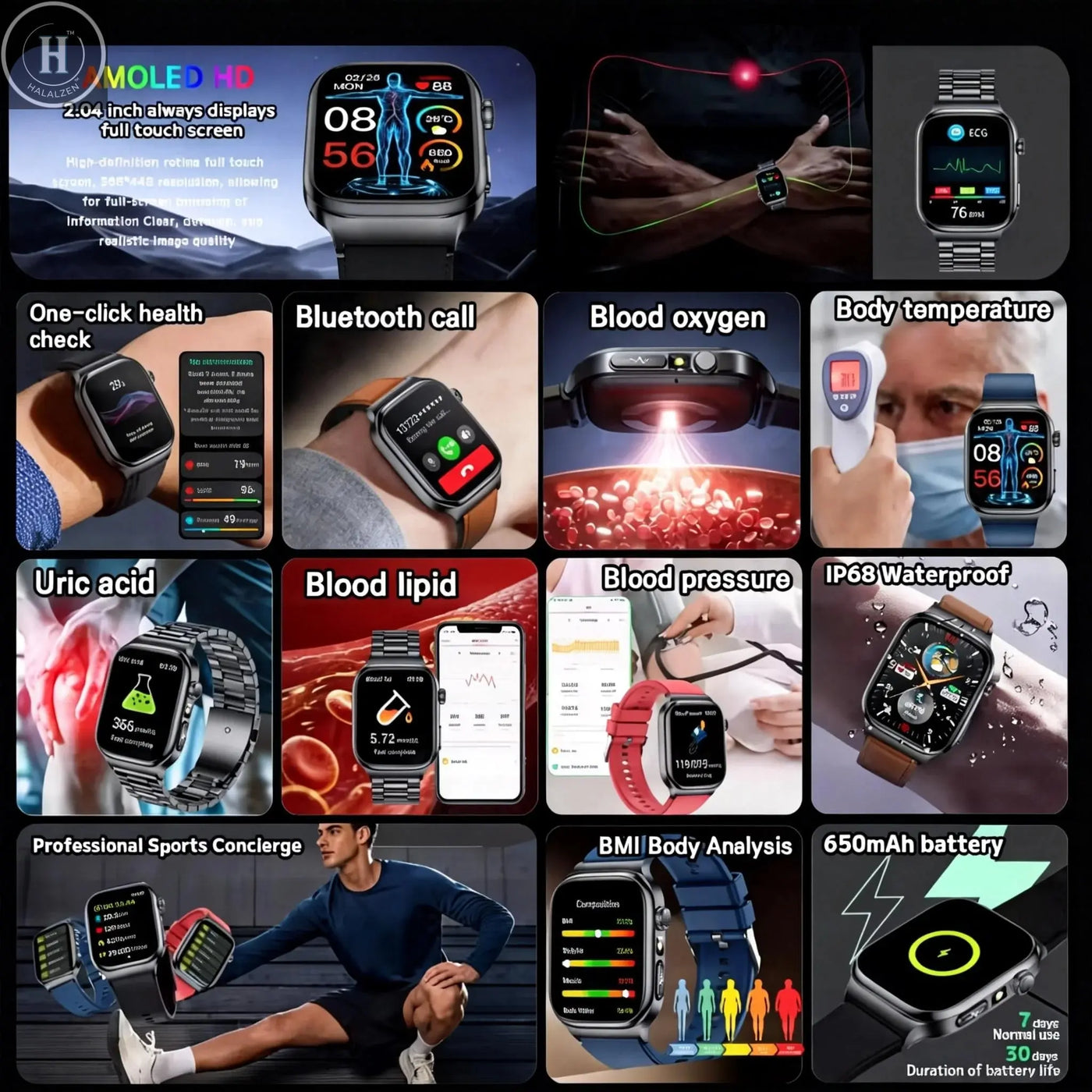 Display Size: 2.04-inch AMOLED full touch screen