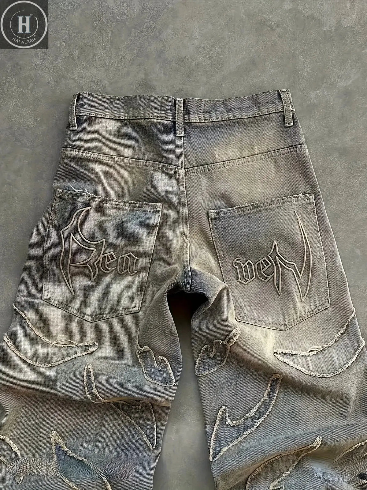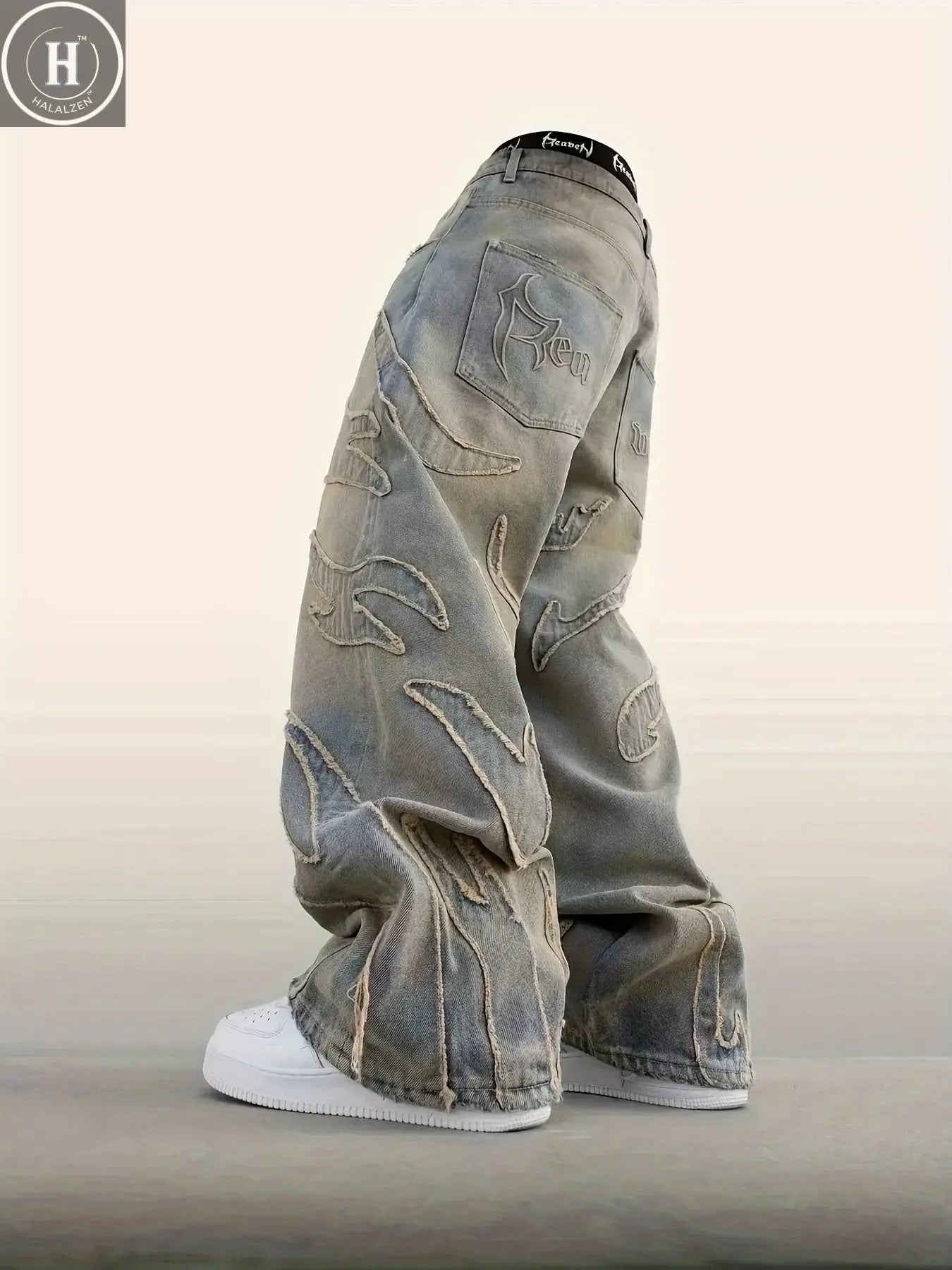 Informare quando questo articolo sarà disponibile Jeans a gamba larga stile graffiti di strada europeo e americano per uomo, pantaloni casual larghi oversize in stile vintage