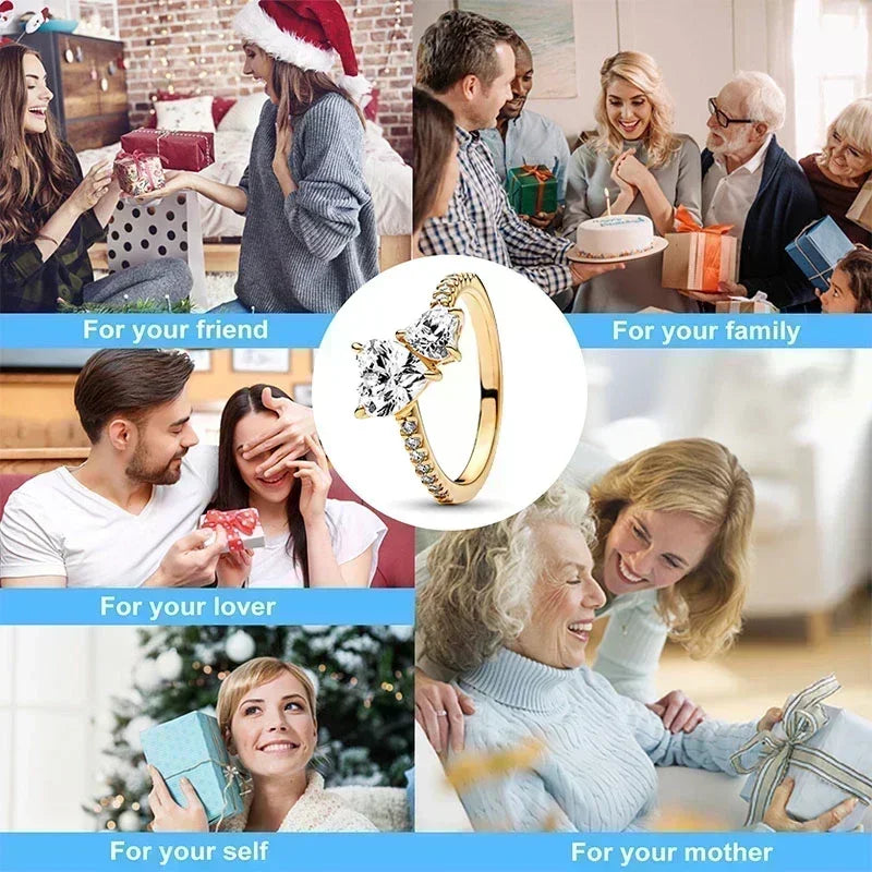 Exquisite Gold Color Series 925 Sterling Silver Classic Square Heart shaped Crown Ring Exquisite Charm Jewelry Birthday Gifts