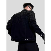 American Sle Heavy Du Sparkling Rhinestone Luxury Men's Denim Jaet Faionable Hair St Brand Spring Autumn Top - 4xl / Black