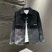 Inform when this item available Men's Casual Loose Fit Denim Jacket With Patchwork Design And Faded Wash Turn Down Collar Single Breasted Long Sleeve Outerwear
