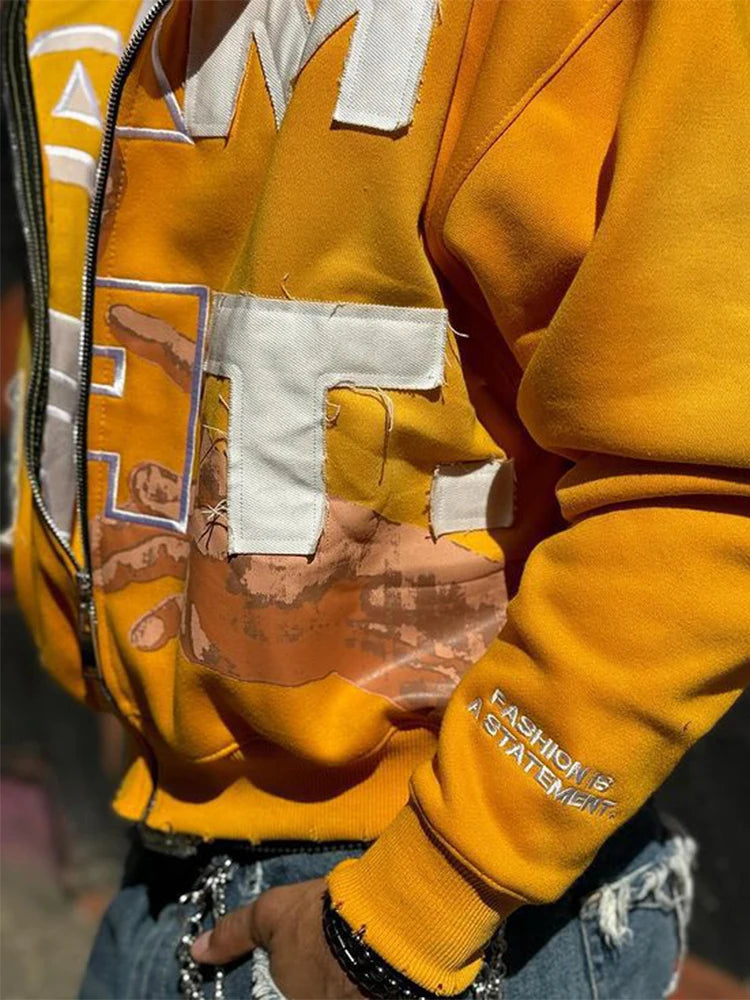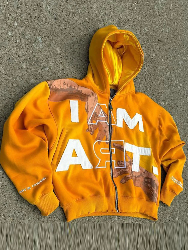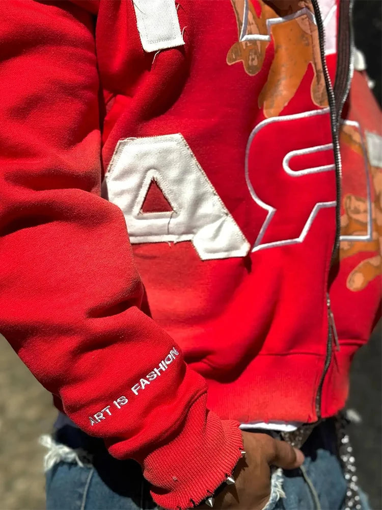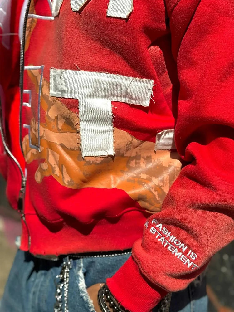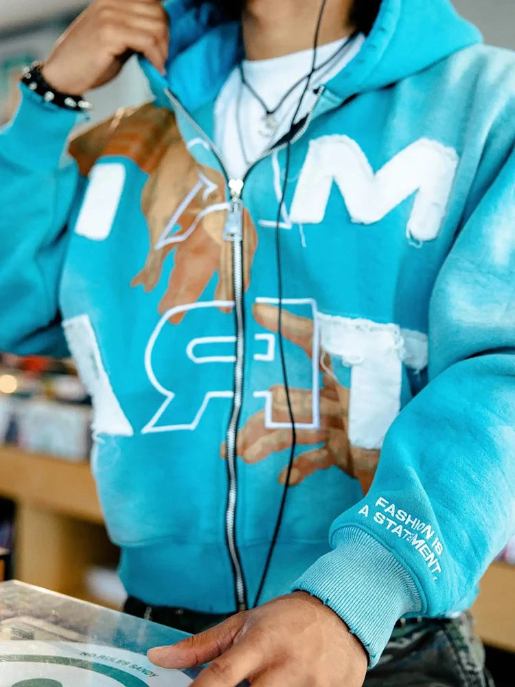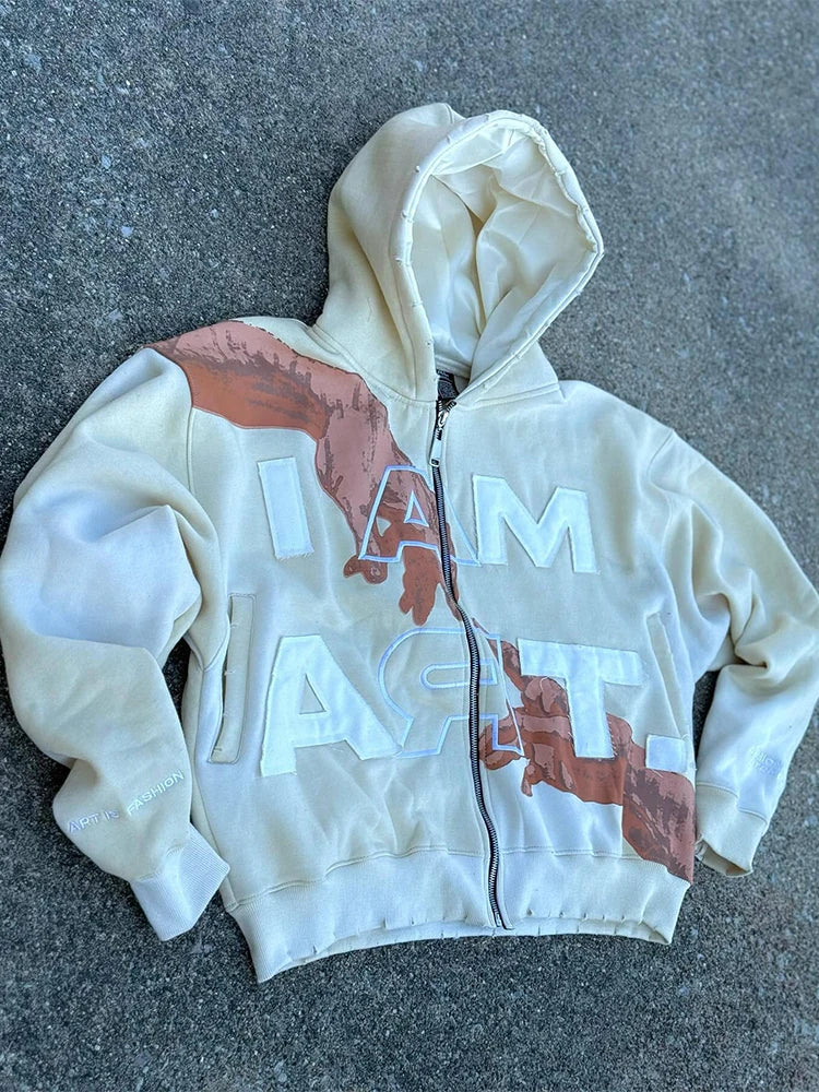 Trendy Baggy Hooded Cardigan Mens Y2K Pattern Print Loose Zip-up Hoodie Sweatshirt Men Spring Hip Hop Long Sleeve Hoodies Unisex