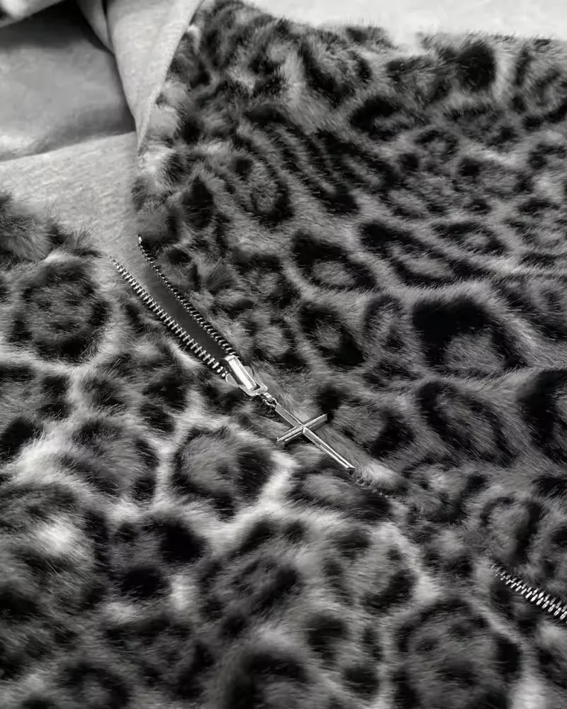 Inform when this item available Y2k clothing Gothic leopard print double-sided oversized hoodie men's retro fashion loose zipper long sleeved sweatshirt