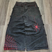 Y2K Vintage Jeans Harajuku Spider Web Printing Black Loose Wide Leg pants Hip Hop Men Women Punk Rock Streetwear Wide Leg Jeans - 01 / M