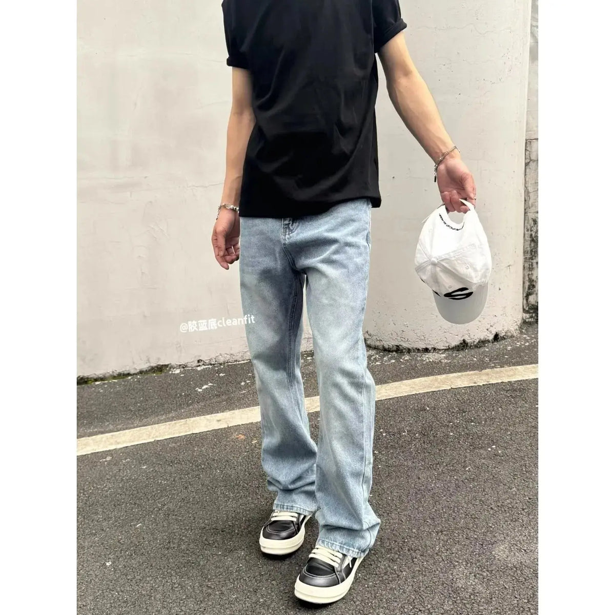 Informar quando este item estiver disponível Calça Jeans Americana Básica Estilo Azul Claro com Alta Elasticidade, Boca de Sino, Caimento Solto, Versátil, Casual, Ajuste Limpo, Calça Longa para Homens