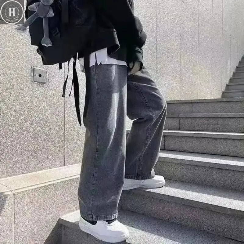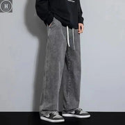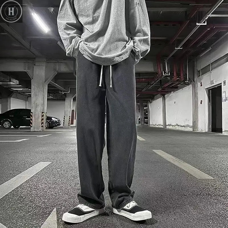 Calças Jeans Longas Casuais Masculinas em Cores Sólidas Coreanas Clássicas para Homem Quatro Estações Reta de Tecido Denim de Perna Larga Azul Claro Cinza Preto 3XL