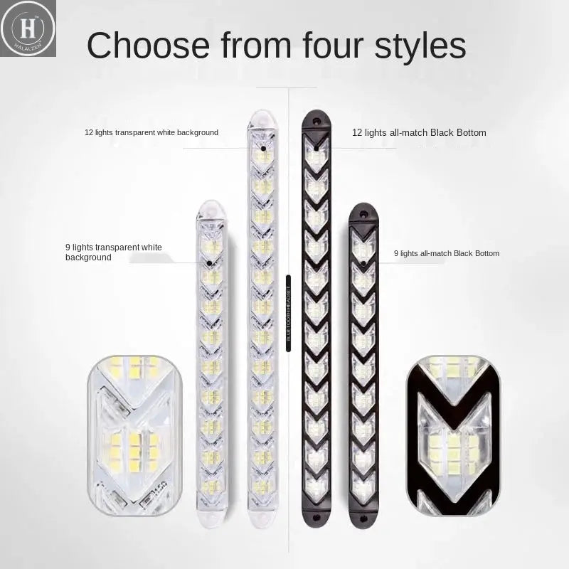 2Pcs Dynamic Red Car DRL LED Daytime Running Lights Waterproof Headlight Strip Turn Signal Yellow 12V Flow Auto Sequential Lamp - Black Surface / 9LED 25CM / Iceblue Yellow