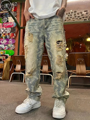 Meddela när denna vara finns tillgänglig Amerikanskinspirerade slitna och trasiga jeans för män, vår- och höstmodell med raka ben, löst sittande, europeisk och amerikansk högstadskänsla, långa byxor