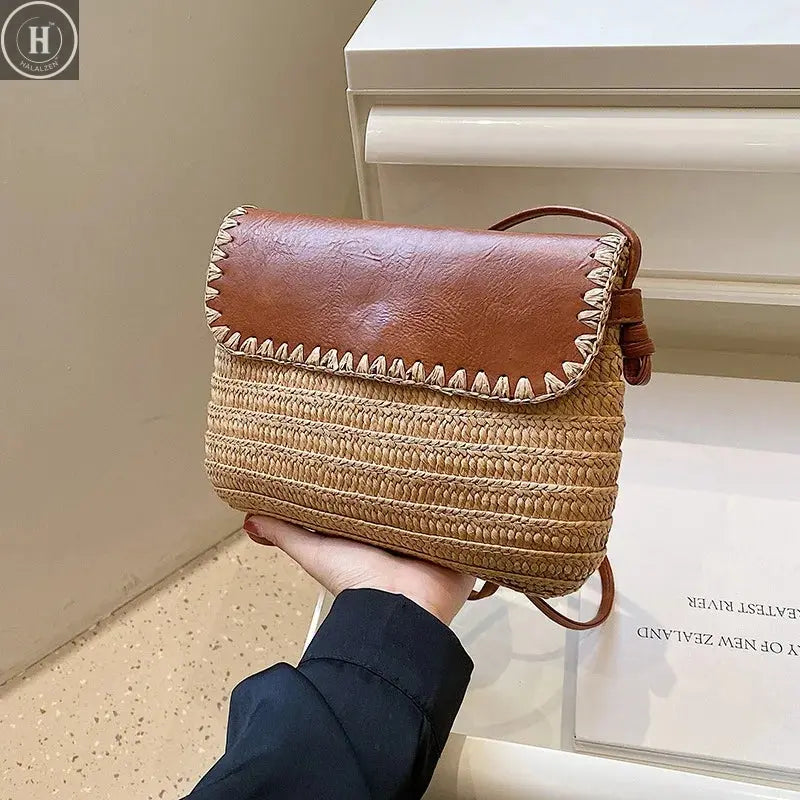 Casual Straw Saddle Crossbody Shoulder Bags Women Summer Messenger Bag Rattan Beach Bags Lady Travel Purses and Handbags Bolsa